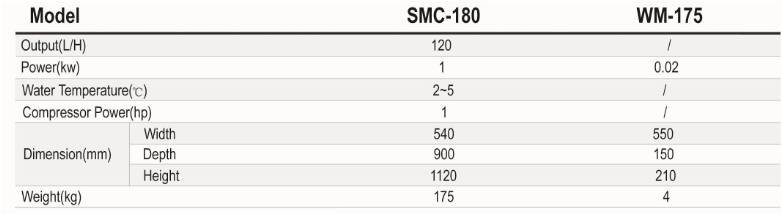 Features 730 litres of cooled water availabel in the first 6 hours, then 60 litres per hour. Cools water to a temperature between 2°C and 5°C. Fully in stainless steel. With water evacuation valve. Mounted on castors with brake. Works on network water pression, no internal pomp needed. Digital display. Cooling with coil system. CE approval and ETL approval.